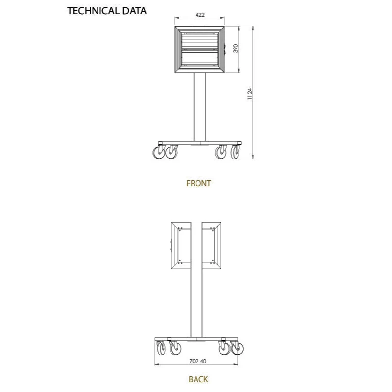 | Mounting | Mobile stand with 4 wheels (2 lockable) |