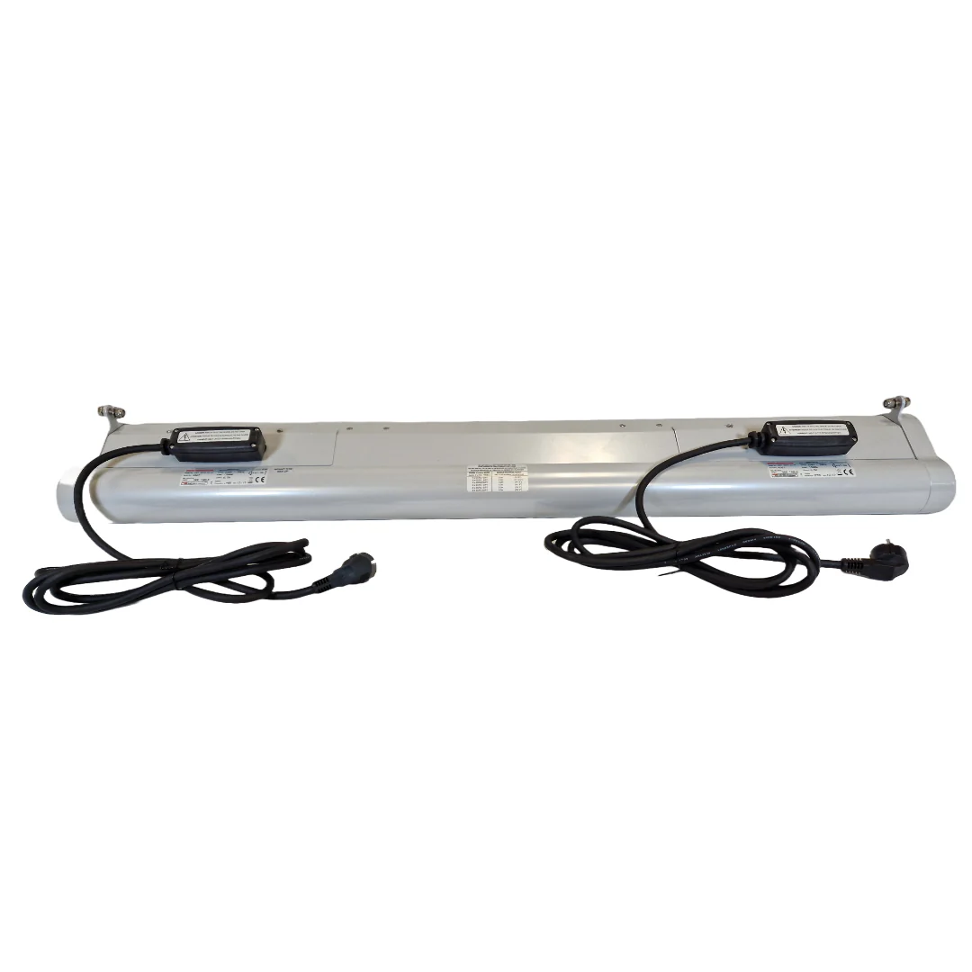 Mount the heater on walls or ceilings using the included bracket. Two 1.5kW lamps can be controlled separately through standard 230V sockets with Schuko plugs. In addition, you can connect it to a dimmer such as Tansun QuartzHeat Eco Control for flexible operation.