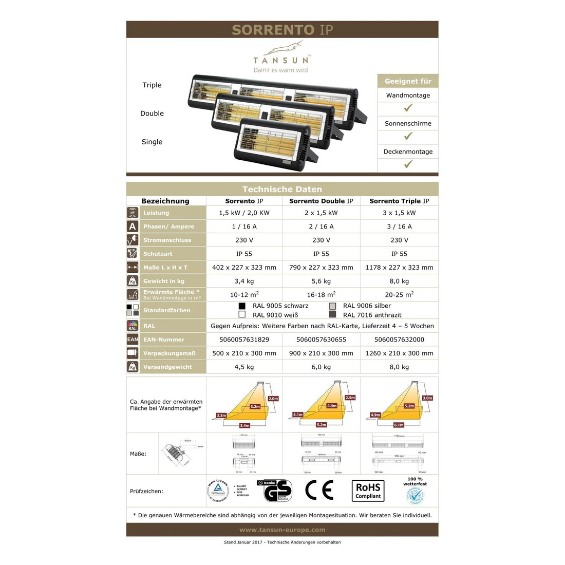 | Model Name | Tansun Sorrento Double 2 × 1.5 kW (3 kW Total) |