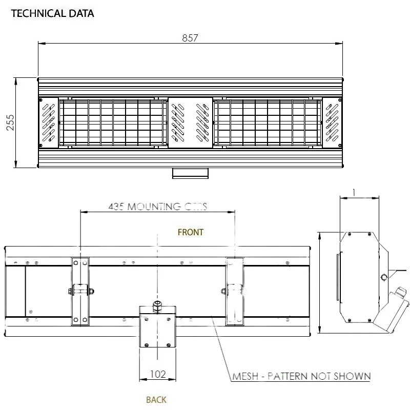 You can attach the included wall brackets using standard screws. For more flexibility, the heater can also hang from the ceiling or chains. The rear wiring box allows easy access during installation and maintenance.