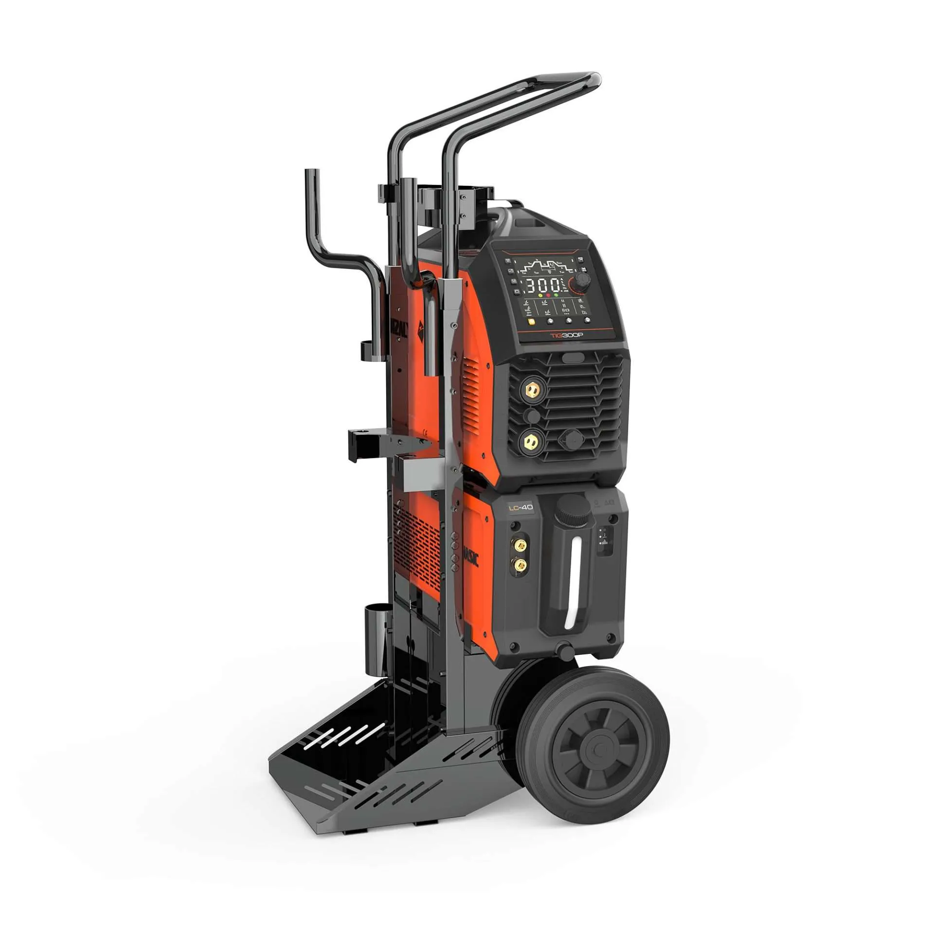 Ved 300A anbefales vannkjøler for lengre sveiseøkter. Luftkjølt brenner fungerer for kortere arbeid og lavere amperaj.
