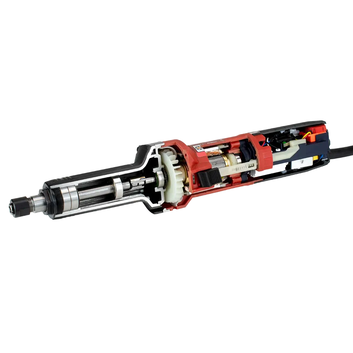 High-performance Straight Grinder 1380W with a brushless motor, constant speed control, soft start, and ergonomic 56mm grip. Designed for precise metalwork and industrial grinding applications.