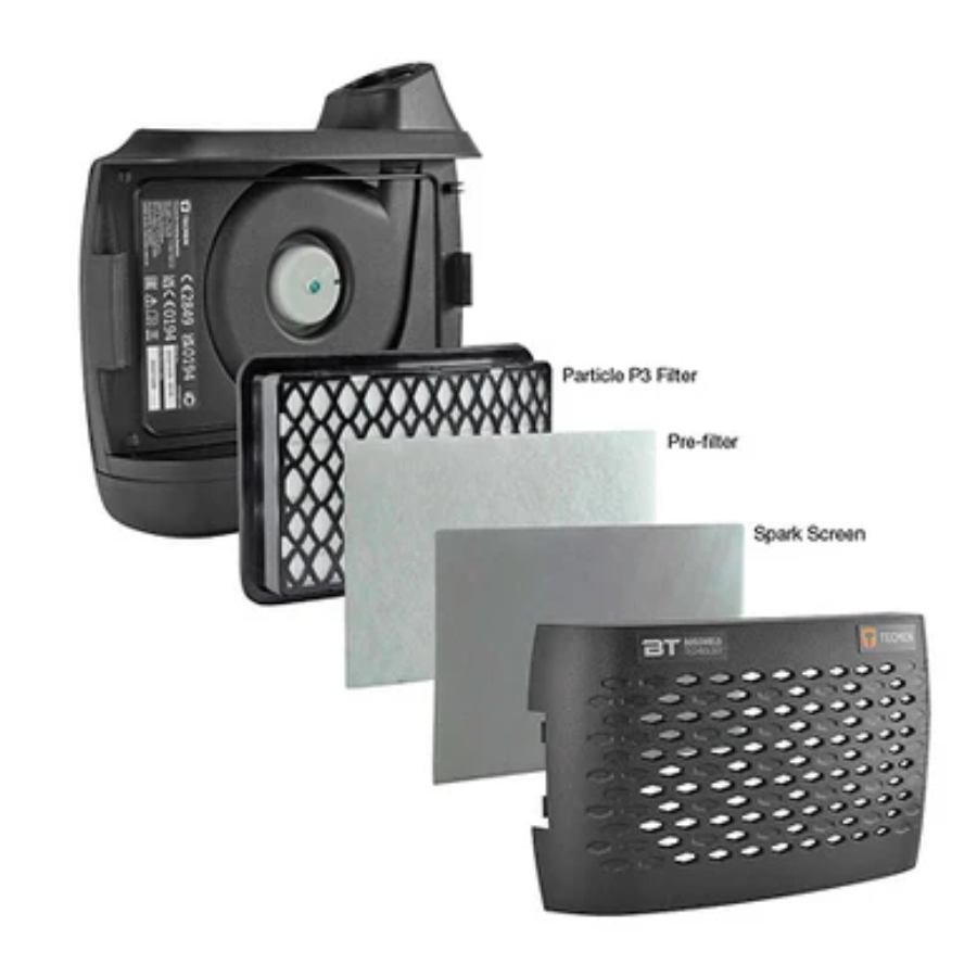 The P3 filter is the final filtration stage inside the blower unit. In addition, it prevents dangerous particles from entering the breathing air channel.